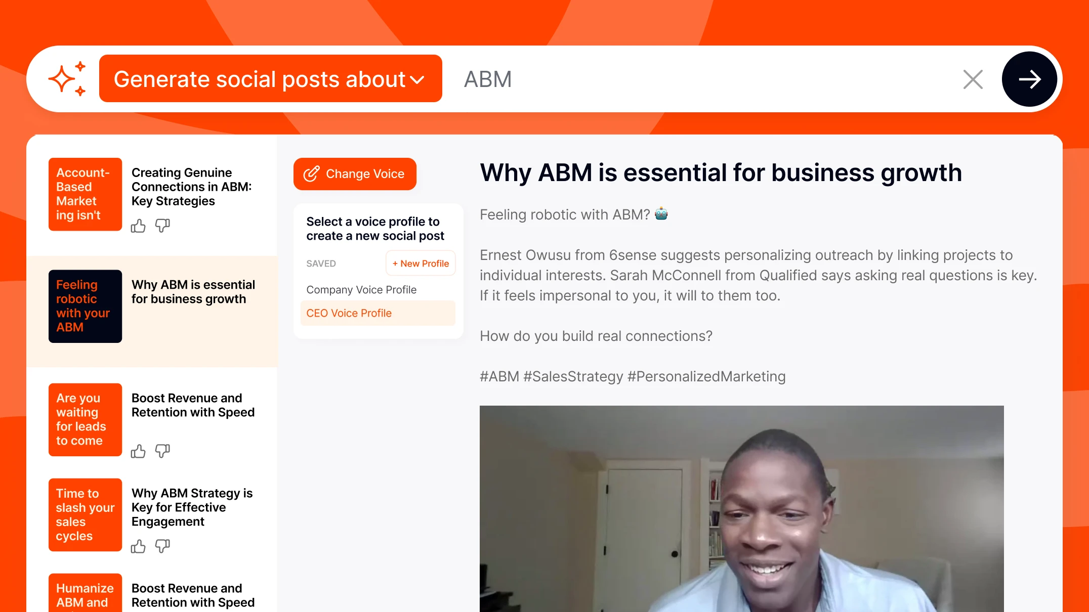 Instantly generate relevant video clips, posts, and ads for multi-channel campaigns, saving time and boosting thought leadership.